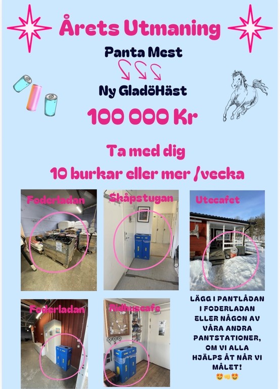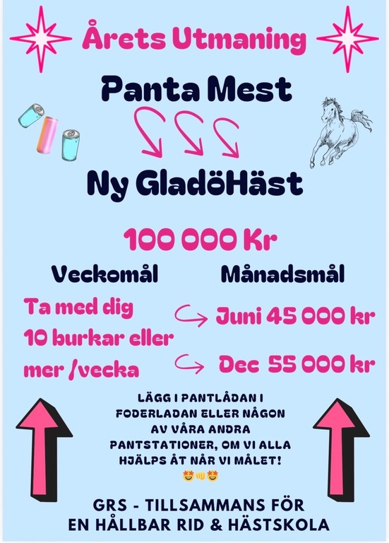 Om vi alla bidrar med 10 st pant (eller mer)per vecka kan vi gemensamt samla ihop till vår alldeles egna PantaMestHäst🤩